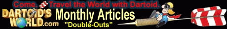 Das Ergebnis ist Dartoids Welt, eine Dart Kolumne, die einfach – einzigartig ist. Dies ist die Kolumne, die seit 1995 in Bull`s Eyes News, von der amerikanischen Darts Organisation (ADO), Double Eagle und zahlreichen anderen Dartspublikationen und Websites rund um den Globus herausgebracht wird.