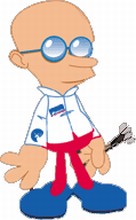 dieser „Boffin“ – mit Brille, weißem Arbeitsmantel und