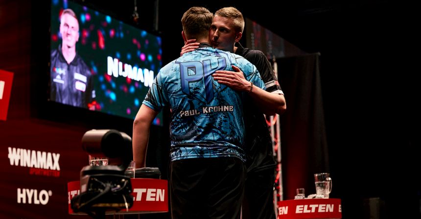 Für Paul Krohne hat es am Ende gegen Wessel Nijman im Decider knapp nicht gereicht. Trotzdem verkaufte sich der 24-jährige aus Münster bei seinem European Tour Debüt gut und kämpfte bis zum Schluss. Mit einem Break in 14 Darts ging Krohne in die Partie, die nächsten drei Durchgänge gingen dann aber an den niederländischen Tourcardler. Krohne checkte ein 85er-Finish, kassierte dann aber ein 126er-Checkout gegen sich. Nijman nahm auch noch die 112 zum 5:2 von der Uhr, Krohne machte insgesamt nur wenig falsch. In 18 und 13 Darts verkürzte der Deutsche auf 4:5, nachdem sein Gegner schon die ersten drei Matchdarts verpasste. Zuvor warf Krohne eine „No-Look-180“ und die zeigte offensichtlich kurz Wirkung, denn es folgte auch noch ein 18-Darter für den Decider. Dort startete Krohne zwar perfekt, dann ging ihm aber im Scoring etwas die Luft aus und Nijman checkte in 13 Darts zum Sieg bei eigenem Anwurf.