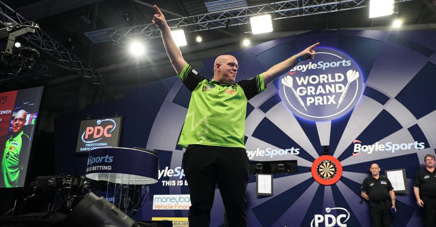 Michael van Gerwen gewinnt den World Grand Prix 2022. Für den Niederländer ist es bereits der sechste Titel bei diesem prestigeträchtigen Turnier. Er setzte sich am heutigen Finalabend in einem hochklassigen Spiel gegen den Engländer Nathan Aspinall mit 5-3 durch. „Mighty Mike“ startete sensationell ins Match und lag schnell mit 4:0 voran. Dann konnte Aspinall drei Sätze in Serie gewinnen und auf 3:4 verkürzen, ehe Michael van Gerwen den Sieg nach Hause spielte. Damit darf er sich auch über einen Siegerscheck von 120.000 Pfund freuen!