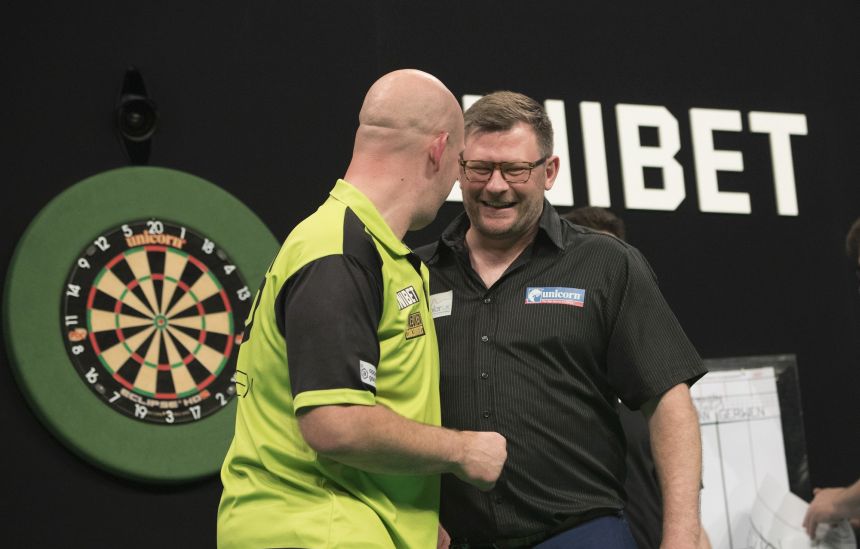 Im vorletzten Duell des Abends traf der Tabellenzweite Michael van Gerwen auf den Nachrücker James Wade, der an den letzten zwei Tagen eher enttäuschte. Am Ende stand aber die erste Saisonniederlage für Michael van Gerwen zu Buche, der sich gegen Wade deutlich mit 3:7 geschlagen geben musste. Mit einem Shanghai-Finish eröffnete Wade die Partie „in style“, es folgte ein 16-Dart-Hold für seinen Gegner. Zwei Legdarts verpasste van Gerwen aufs Doppel und sein Gegner bestrafte das mit seinem 18. Dart. Auf der Doppel 10 holte sich „The Machine“ die 3:1 Führung, van Gerwen vergab zuvor zwei weitere Darts auf den äußeren Ring. 14 Darts benötigte Wade für die komfortable 4:1 Führung, doch der Weltranglistenzweite meldete sich mit einem 110er-Finish zurück. Ein 121er-Checkout zum 12-Darter brachte Wade seinen fünften Durchgang ein, „Mighty Mike“ hielt mit einem 94er-Finish dagegen. Wade spielte mit der 135 sein nunmehr drittes High Finishes in der Partie, ehe er in 16 Darts den Sack mit 7:3 zumachte. Damit schaffte Wade seinen ersten Sieg gegen MvG seit zwei Jahren.
